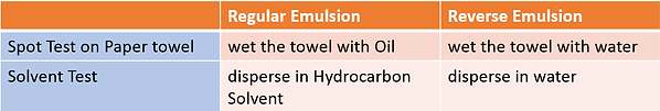 Spot tests or solvent tests can be run to determine if it is a regular emulsion or a reverse emulsion.